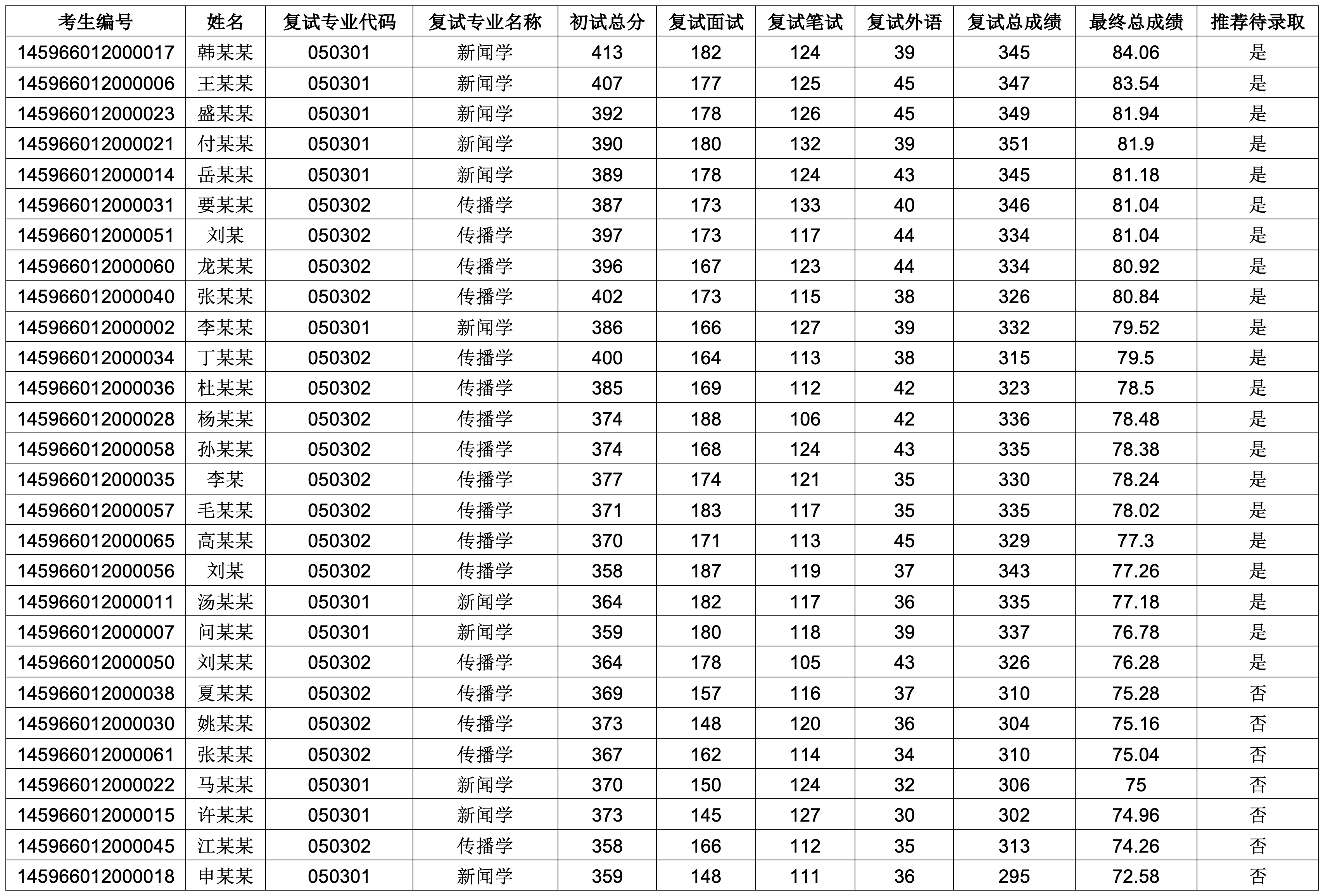 新闻传播学院2026年硕士研究生招生复试成绩及推荐待录取名单(学术型硕士)